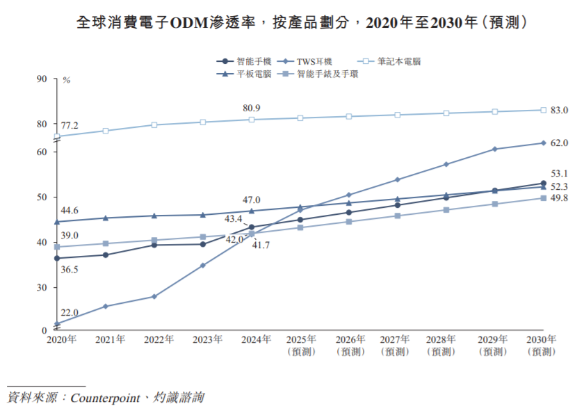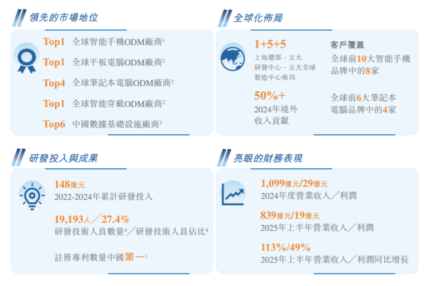 截至2024年,华勤技术已稳居全球消费电子ODM出货量榜首,业务版图从智能手机扩展至笔记本电脑、平板电脑、AIoT设备及汽车电子领域,形成多元化产品矩阵。