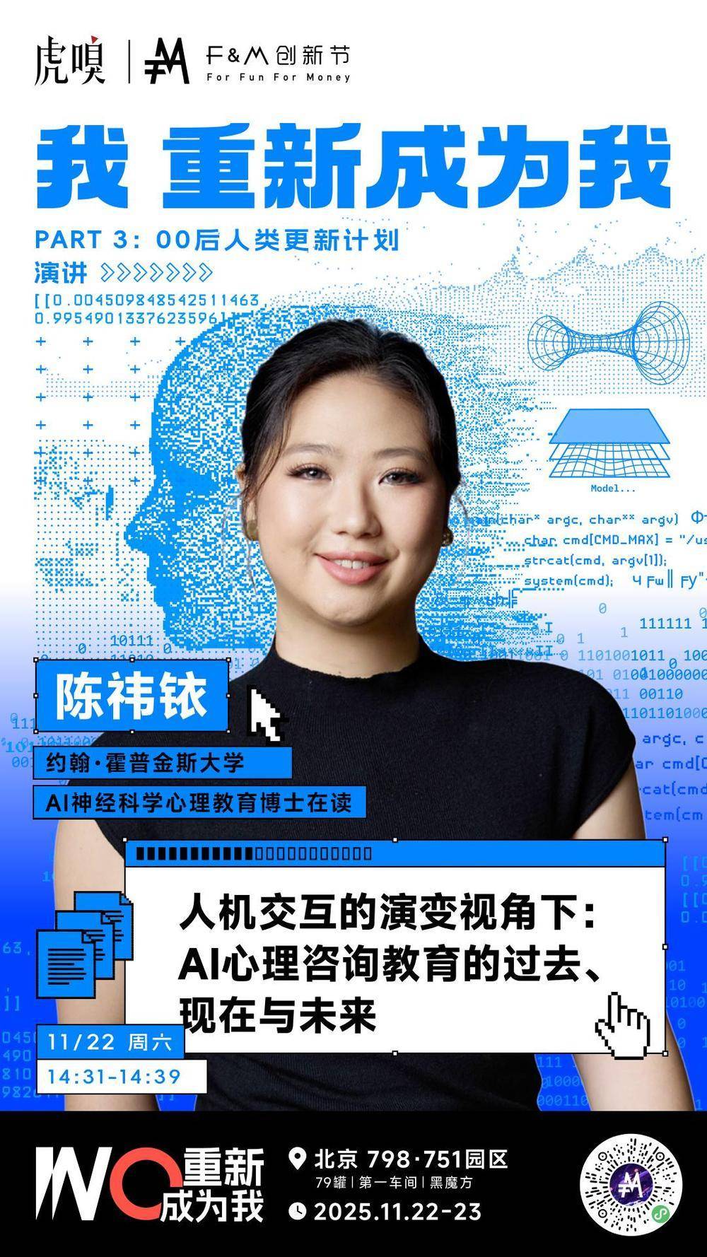 约翰・霍普金斯大学AI神经科学心理教育博士在读的陈祎铱,将带来《人机交互的演变视角下:AI心理咨询教育的过去、现在与未来》的主题演讲。在AI开始渗透教育领域的今天,她关注的不是技术的效率,而是“人文关怀如何与智能结合”。她将探讨如何用AI助力心理教育,让技术服务于人的情感成长和生命价值的实现,这正是对“更好生活”的具象化探索。