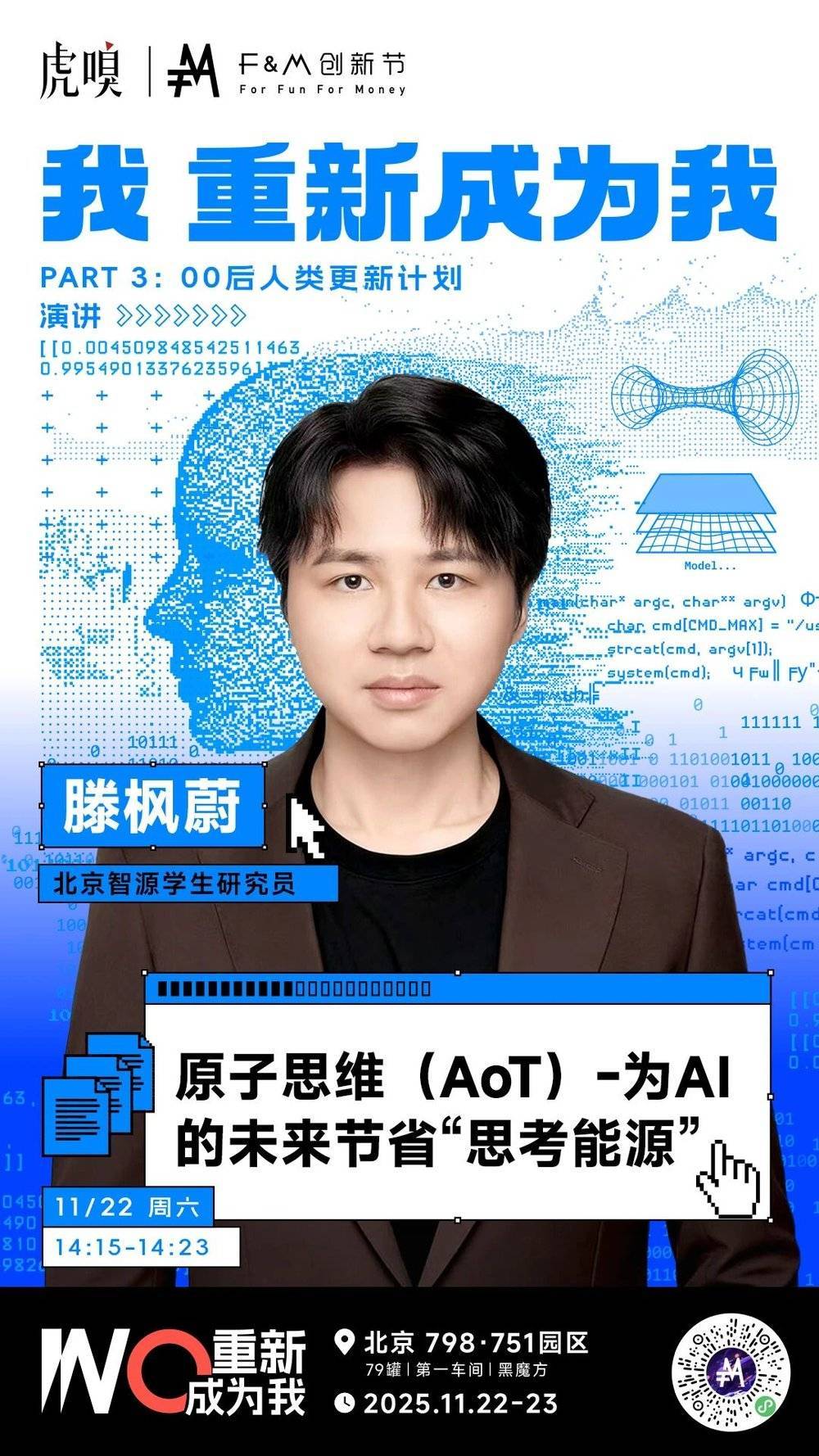 为什么邀请他?作为年轻的研究者,滕枫蔚代表着“00后人类更新计划”的力量。他的议题不仅技术性强,更隐含着对人类思维模式的深刻反思。在AI处理逻辑的同时,人类该如何保留直觉与创新?这是滕枫蔚想要探讨的问题。