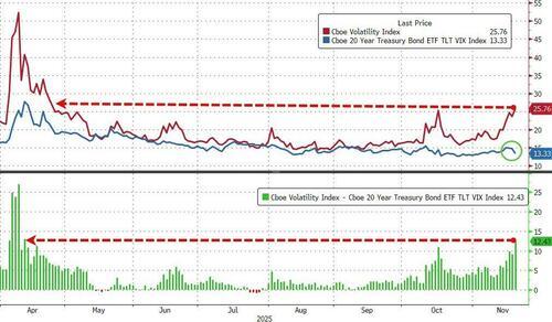 衡量市场恐慌情绪的VIX指数收于26点上方,为4月以来首次突破该关键心理关口。纳斯达克100指数的预期波动率指标VXN更升至32点上方,显示科技股波动性显著加剧。