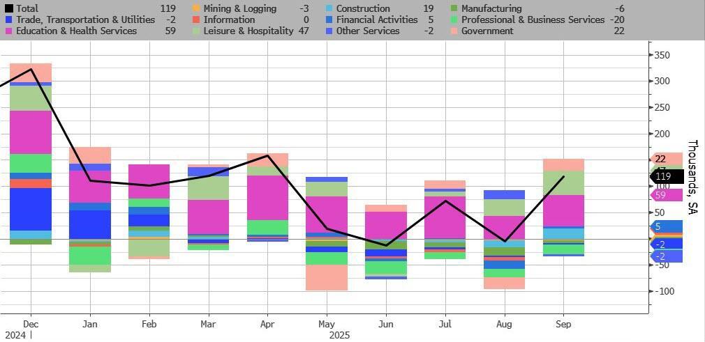 “9月的就业报告显示,劳动力市场在政府关门前依然有韧性,就业人数超过预期。但整体情况仍然不清晰,因为8月的数据被改为负增长,失业率也上升。这些数据都是两个月前的情况,并不能反映我们现在11月所处的状态。”