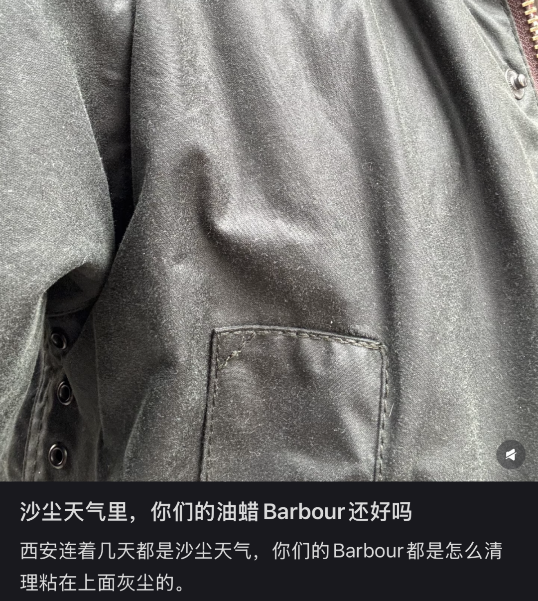 南方网友晒出自己“几乎全新”的黑色Barbour油蜡款,发霉发成豹纹。