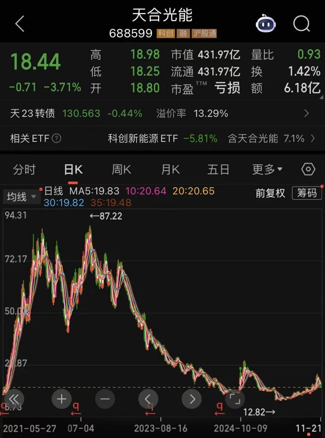 最近两年半时间,天合光能的市值累计蒸发了接近1500亿。