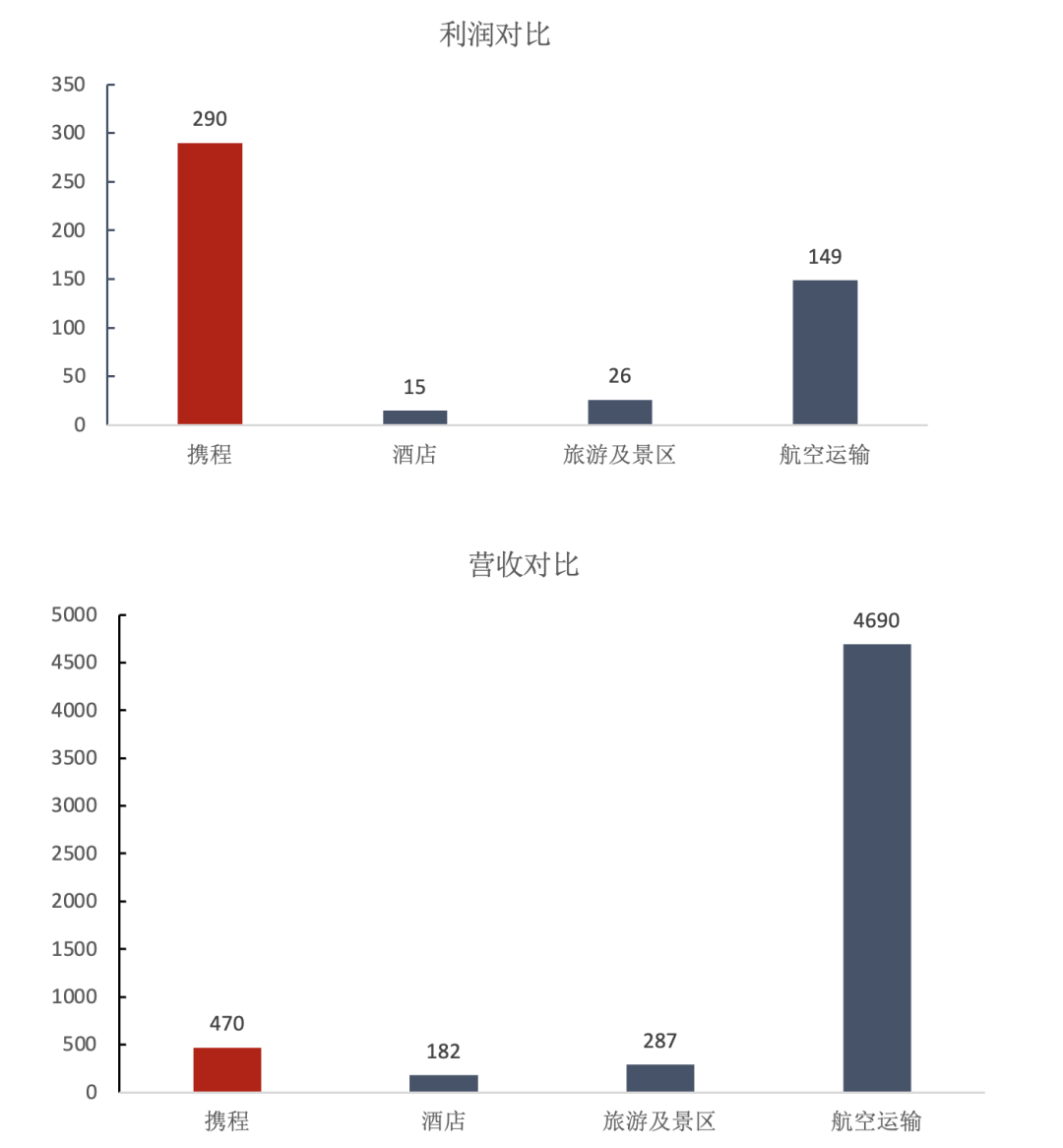 然而,从营收角度来看,酒店、景区、航空运输三大子板块在今年前三季度的收入合计约5159亿,而同期携程的营收只有470亿。这意味着,携程以不到整个旅游链10%的营收,却产生了超过整个旅游链90%的利润。这样的盈利效率,无疑令人咂舌。