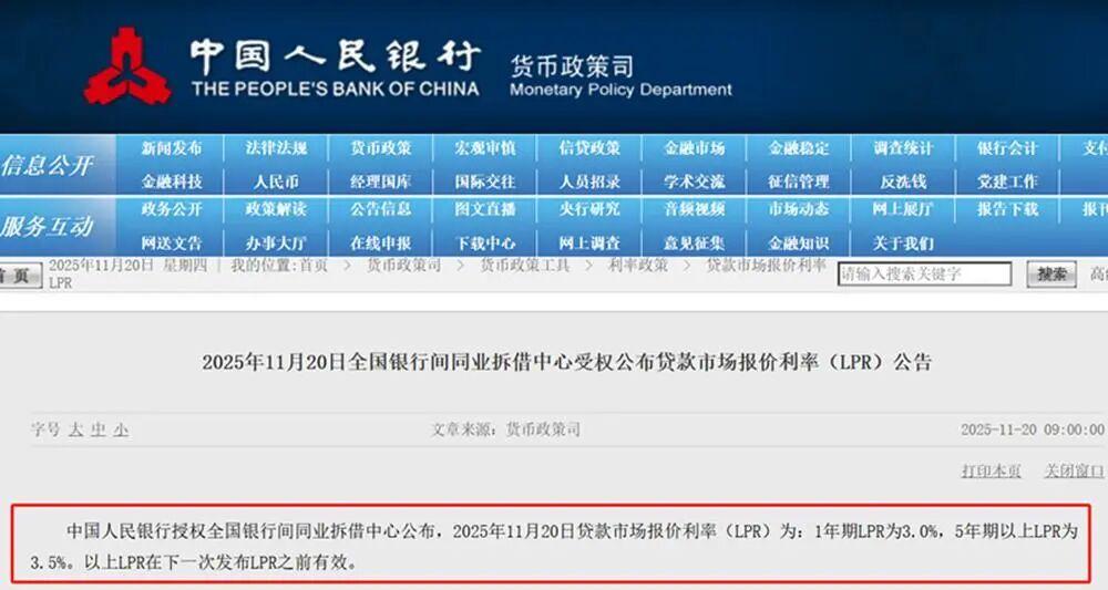 就在昨日(11月20日),央行公布了最新的贷款市场报价利率(LPR),1年期LPR为3.0%,5年期以上LPR为3.5%,二者均与上月持平。