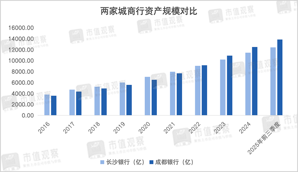 值得一提的是,长沙银行与同为城商行腰部梯队的成都银行差距不断拉大。早在2017年前,长沙银行的业绩及资产规模均在成都银行之上,但此后成都银行逐渐后来居上,2018年先实现净利润赶超,2022年又在资产规模上完成超越。