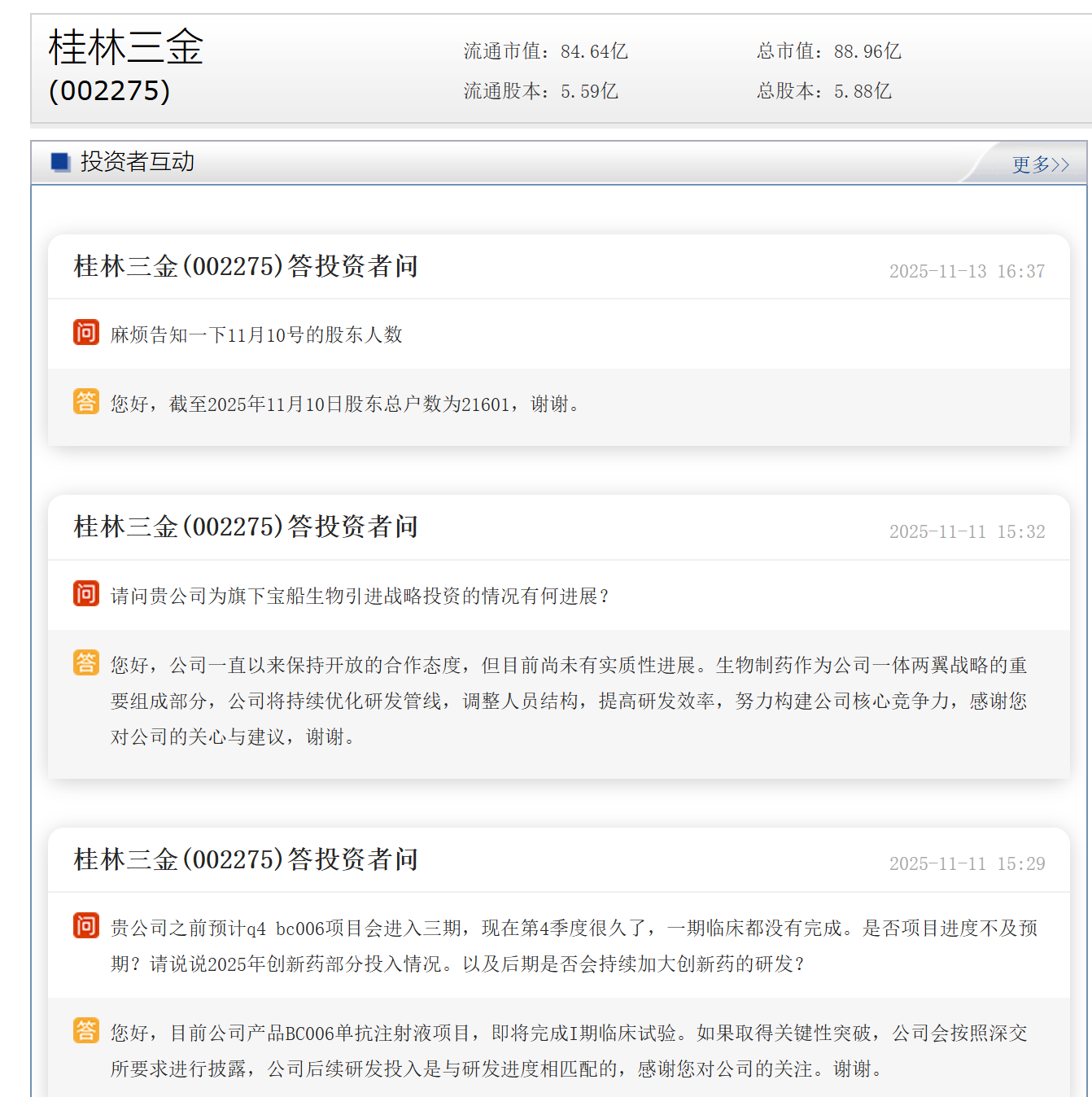 11月5日,桂林三金药业股份有限公司发布公告称,公司于11月3日与多家机构投资者召开线上业绩交流会,针对2025年三季报中“营收微降但净利微增”的反差表现作出回应。根据10月29日发布的财报数据,公司前三季度实现营业收入14.62亿元,同比下降7.14%;归母净利润3.85亿元,同比增长0.35%;扣非归母净利润3.53亿元,同比增长1.70%。这一业绩表现引发市场对桂林三金未来增长潜力的关注。