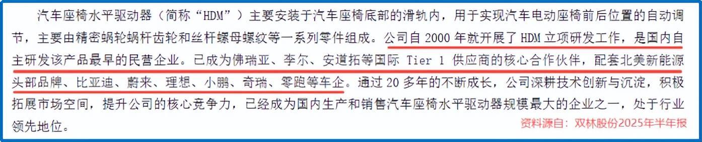 2000年中国汽车产业爆发前夕,双林股份敏锐捕捉到核心零部件国产化机遇,以座椅水平驱动器(HDM)为突破口切入汽车赛道。该部件需在-40℃至85℃极端环境下保持微米级精度,而双林股份凭借模具加工领域的技术积累,成功攻克这一难题。