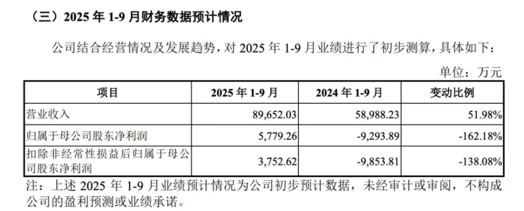 更为关键的是,百奥赛图的基本面确实有了较大程度的改善。今年前9个月,公司预计收入为8.97亿元,同比增长超过50%;同期归母净利润为0.58亿元,较2024年同期的0.93亿元净亏损实现了大幅改善。