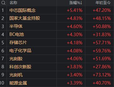 受此影响,今天半导体产业链继续走强。国家大基金持股、电子化学品、光刻机、存储芯片等板块大涨。个股方面,中芯国际、北方华创、中微公司、澜起科技、拓荆科技、盛美上海等大市值的龙头股大涨,盘中股价均创历史新高。临近上午收盘,北方华创封住涨停,总市值近3336亿元。科创50指数也再度收涨3.49%,创本轮行情新高。
