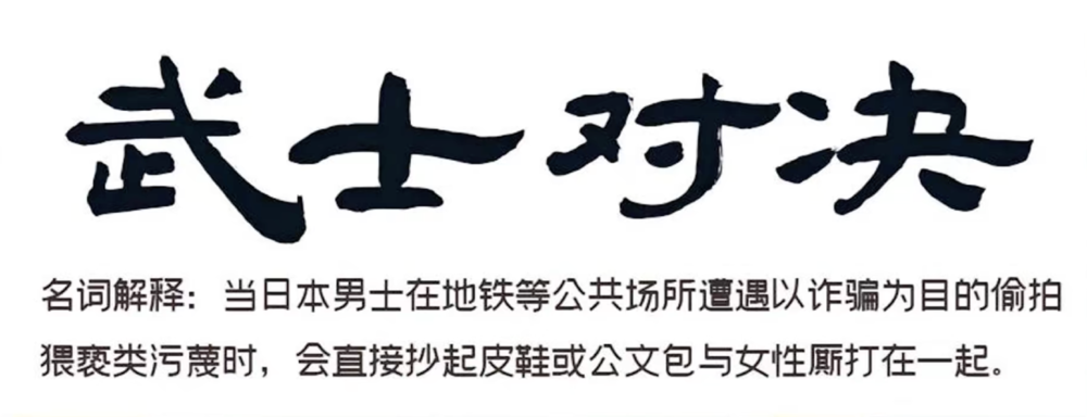 虽然对于痴汉的证明难度是存在的,但武士决斗仍是日本的暴力事件碎片流传到中国之后所诞生的强烈偏见。