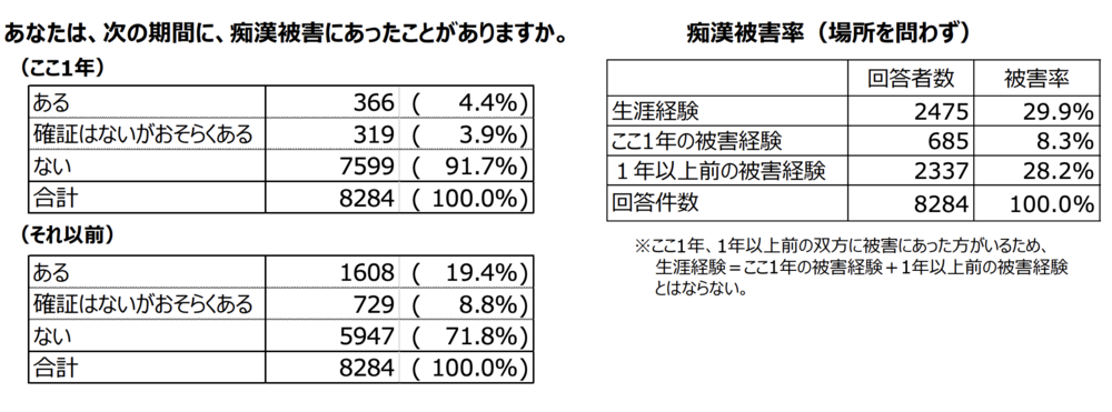 居住在东京或通勤于东京的人群中,过去一年遭受性骚扰的概率约为 29.9%