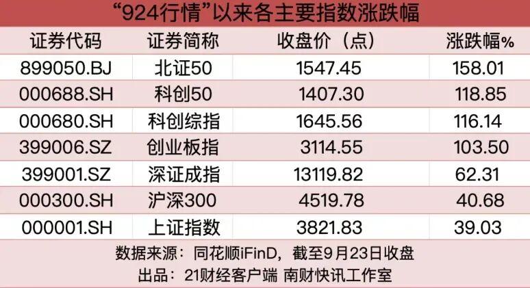 从过去一年的市场表现来看,A股市场确实交出了一份令人瞩目的成绩单。北证50指数暴涨158%,领涨全球市场;上证指数累计涨幅达到39%,深证成指涨幅更是超过60%,而创业板指更是以超过100%的涨幅直接翻倍。这些数据无疑证明了A股市场的强大潜力和投资价值。
