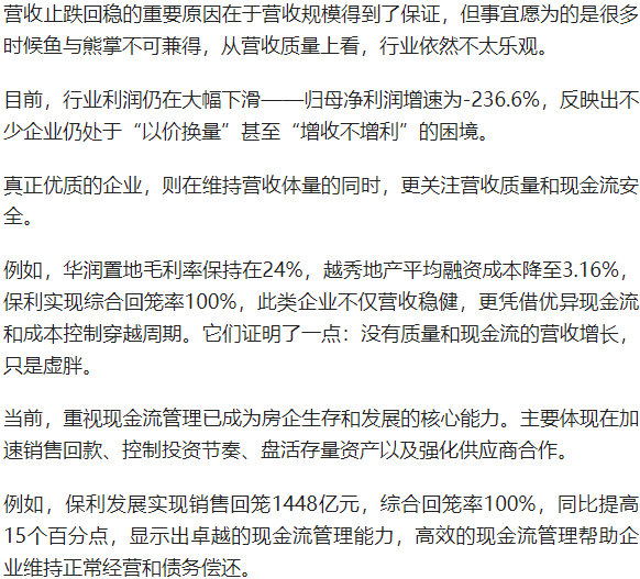 在追求营收规模的同时,房企愈发重视营收质量。通过优化成本结构、提升项目利润率,企业实现了“有质量的增长”。例如,金茂凭借“金茂府”产品线实现多地“开售即罄”,推动营收同比增长14%;万科通过迭代“三好住宅”标准,提升了项目品质与效率。