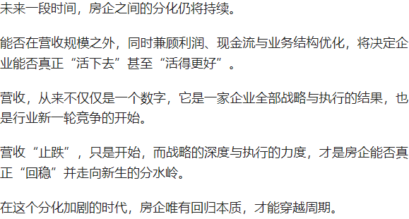 2025年头部房企营收数据的好转,为楼市回暖提供了积极信号。然而,行业复苏仍需政策支持、企业转型与市场需求的多方协同。在战略聚焦、业务结构重塑与产品力创新的推动下,房地产市场有望逐步走出低谷,实现高质量发展。