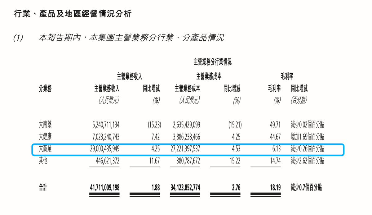 白云山2025年半年报显示,其大商业板块(医药流通业务)上半年实现营业收入290亿元,占上市公司总收入的54.90%,毛利率减少0.26%。分地区看,华南地区收入311.9亿元,占总营收74.78%,华东地区仅为34.48亿元,占比不到1%。白云山方面表示,南京医药作为江苏省医药流通业领军企业,本次交易将有利于优化区域产业布局,增强医药流通业务竞争优势,并带动医药制造业务增长。