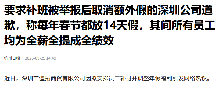当一家以14天年假著称的商贸公司,因台风补班争议登上热搜时,这场劳动权益的博弈已然超出普通职场纠纷的范畴。深圳疆拓商贸公司用一纸取消年假的通知,将企业与员工的矛盾推向舆论风口,也暴露出部分企业在现代劳动管理中的认知缺陷。
