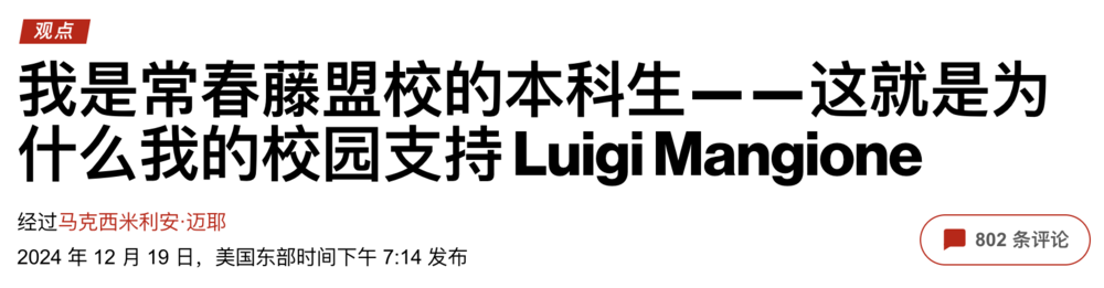 枪击特朗普的克鲁克斯、枪杀查理·柯克的泰勒·罗宾逊,均出身典型中产家庭。若这两个案例尚显单薄,那么弥漫在街头、校园与网络中赞颂路易吉的声音,则成为这种氛围的集中体现。
