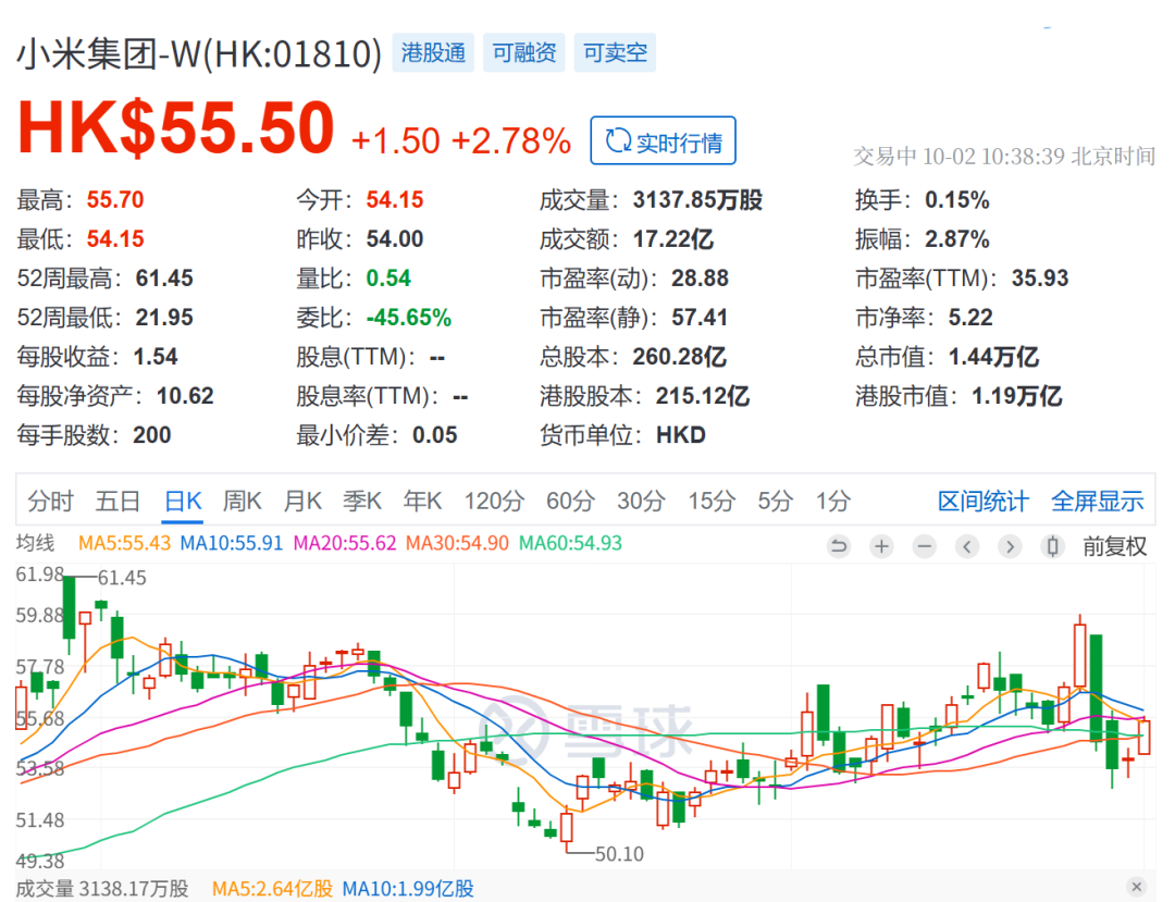 除了安抚市场之外,小米为了稳定军心还是掏出了一些“真金白银”。9月29日晚,小米集团发布公告,斥资2699.62万港元回购50.74万股,每股回购价格约53港元。这是小米今年第二次回购,第一次还是在年初,一月份合计回购683万股,耗资2.25亿元。