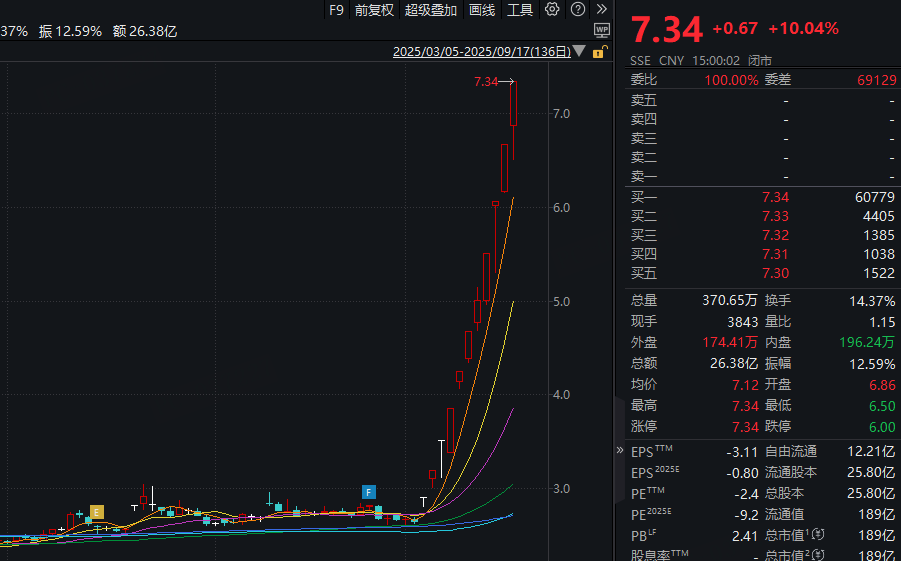 2025年9月的A股市场,一颗耀眼的“明星”悄然升起——上市房企首开股份。自9月2日至9月16日,短短11个交易日内,首开股份的股价如同坐上了火箭,从2.64元/股一路飙升至7.34元/股,实现了令人瞩目的“11天10板”走势,累计涨幅高达178%,这一数据无疑在市场中掀起了轩然大波。