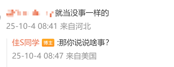 有网友在陈震妻子@佳S同学 的社交动态下评论:“就当没事一样的”,她回复称:“那你说说啥事?”