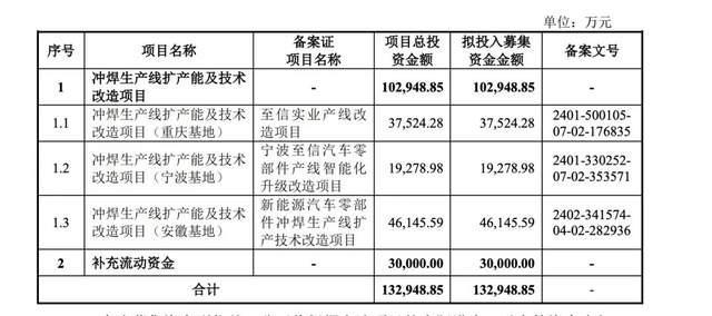 此外根据《招股书》,至信实业计划募集的13.29亿元,将被投向两个主要方向,一是冲焊生产线的扩产与技术改造项目,二是补充流动资金。其中,用于补充流动资金的金额高达3亿元,占总募资额的近23%。一个值得注意的细节是,这笔金额与至信实业截至2024年末的短期借款余额2.86亿元十分接近。