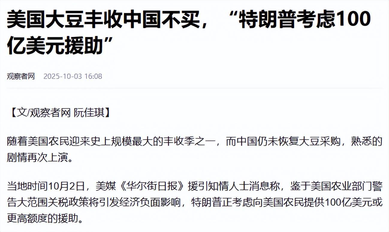 这场博弈暴露了美国农业的脆弱性。过去拜登政府可忽视大豆市场,因红州选民不会转投民主党。但特朗普的选票基础正因关税战受损,大豆已成为比稀土更致命的“经济武器”。2025年中美博弈天平明显倾斜,特朗普上半年被稀土问题困扰,下半年又遭大豆危机重创,或许此刻他才真正理解:在全球产业链中,单边主义终将自食其果。