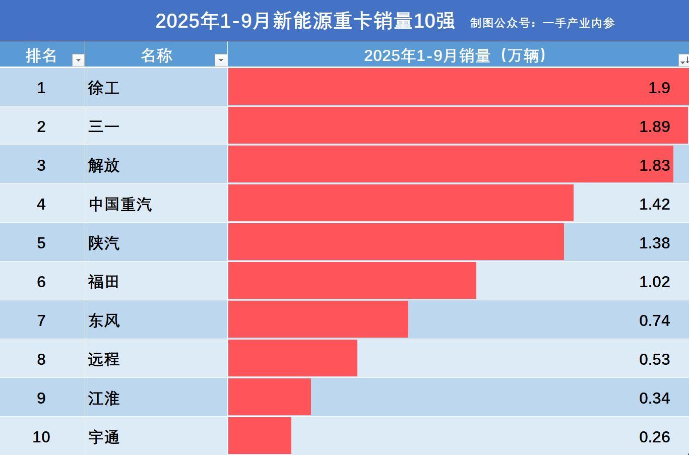 附:2025年1-9月新能源重卡销量TOP10名单(数据来源:北斗营运证销量统计)
