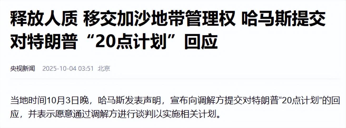 上周五,特朗普向哈马斯发出最后通牒,要求其在72小时内答复是否接受该计划,否则美国将全力支持以色列对哈马斯发动‘地狱式打击’。令人意外的是,仅过一天,哈马斯便迅速回应,在声明中不仅高度赞扬特朗普的‘领导力’,还承诺释放所有人质、移交加沙管理权,并表示愿意立即开启和平谈判。