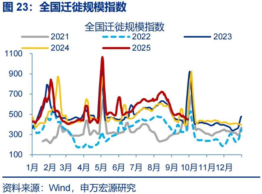 服务业中,新订单指数明显回落。9月,服务业主要分项中,新订单指数回落较大(-1.0pct至46.7%)。高频数据显示,9月,全国迁徙指数同比下行8.5pct至5.6%;国内、国际执行航班架次同比均有下行,分别较前月回落0.5、0.7pct至1.1%、10.2%。
