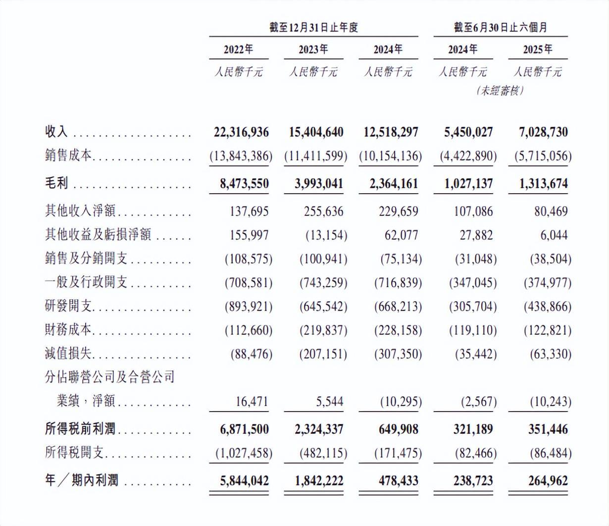 财务方面,报告期内营业收入分别为2022年223.17亿元、2023年154.05亿元、2024年125.18亿元,2025年上半年70.29亿元。相应的净利润分别为58.44亿、18.42亿元、4.78亿元和2.65亿元。