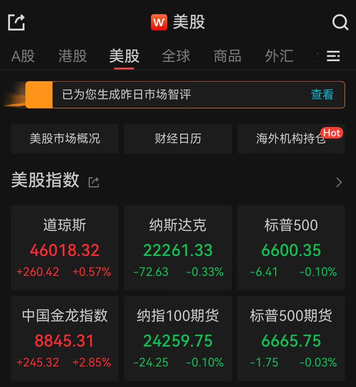 值得注意的是,纳斯达克中国金龙指数表现强劲,收涨2.85%。其中,迅雷、百度集团涨幅超过11%,万国数据、小牛电动涨幅超过7%,蔚来涨幅超过6%。正业生物跌幅超过4%,禾赛科技跌超3%,晶科能源、量子之歌跌幅超过2%。