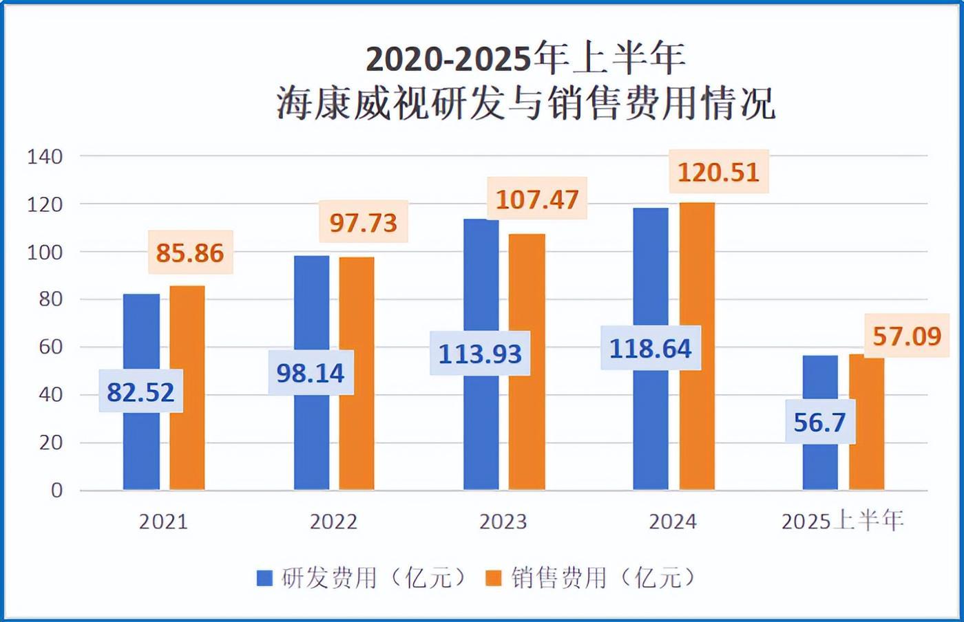 数据显示,2020-2024年,海康威视研发费用与销售费用几乎持平,后两年每年都分别在100亿元以上,相应费用率超10%,且数据还每年都在上升。这说明,近几年海康威视为研发和宣传公司创新产品花了不少的人力物力,为未来能实现持续增长奠定了基础。