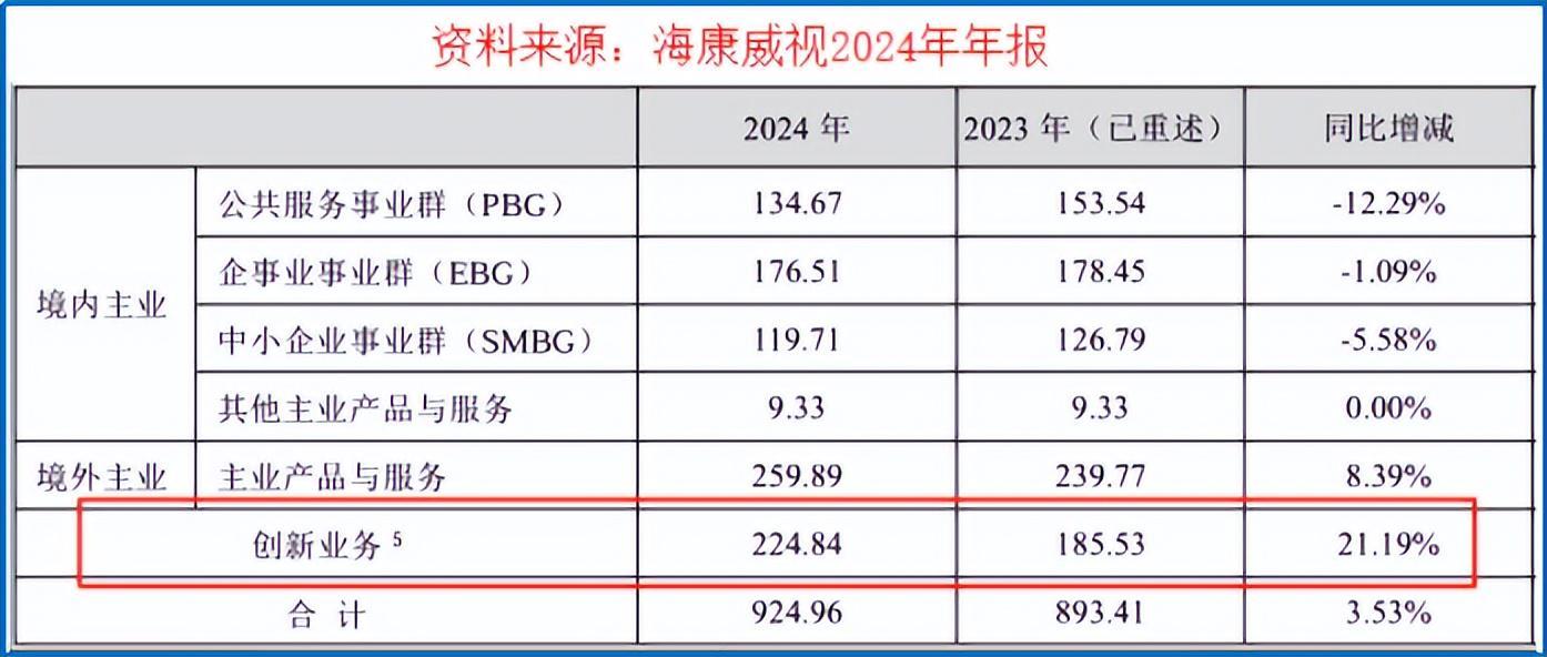 数据显示,2024年海康威视创新业务营收突破224亿元,同比增速超过21%,远高于传统业务。2025年上半年势头更猛,公司创新业务营收达117.66亿元,同比增长近14%,占总收入比例已逼近30%。