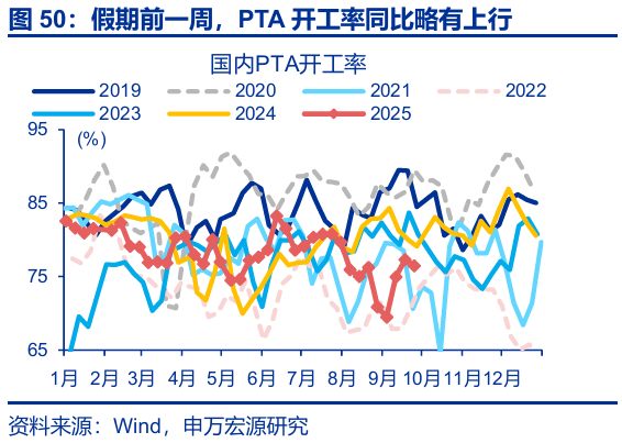 十一假期前,工业生产整体向好,建筑业开工表现分化。十一假期前1周(9月24日至9月30日),工业生产中,高炉开工有所回升(环比0.5%),同比较前周上行0.5pct至6.2%。石化链开工也有改善,纯碱、PTA开工同比分别较前周上行2.3、0.1pct至8.5%、-2.6%。汽车链开工则延续下行,半钢胎开工率同比-2.1pct至-5.5%。建筑业开工表现分化,更多反映地产投资的全国粉磨开工率小幅改善,同比-13.7pct至-8.8%;而反映基建开工的沥青开工率冲高,同比较前周+5.7pct至18.9%。