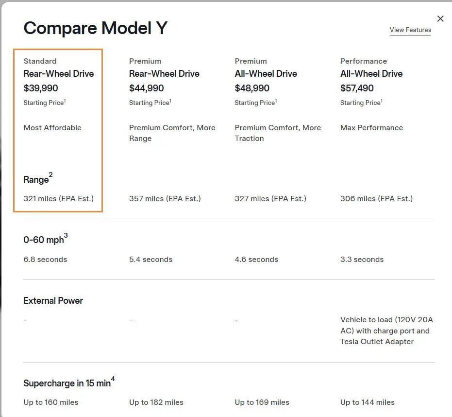 根据特斯拉官网最新显示,Model Y标准版在美国市场起售价定为3.999万美元,较此前版本降价约11%。这一调整与特斯拉德国柏林工厂负责人同日透露的"减配降价约10%"信息高度吻合。更引人注目的是,Model 3标准版以3.699万美元的定价成为特斯拉史上最便宜车型,较原售价下降幅度达8%。