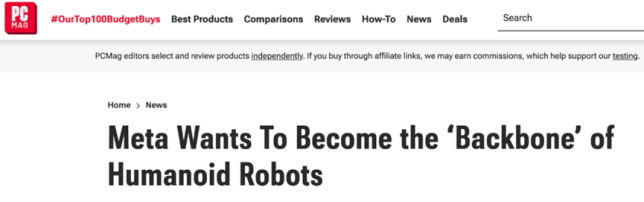 近日,PCMag披露Meta首席技术官博斯沃思(Andrew Bosworth)在总部吹风会上宣布:人形机器人战略优先级已提升至与增强现实(AR)同级,未来数年将投入'数十亿美元'开发通用软件平台,目标成为机器人产业的'安卓系统'。这一战略转向标志着Meta从元宇宙困境中抽身,将资源集中于机器人软件生态建设。