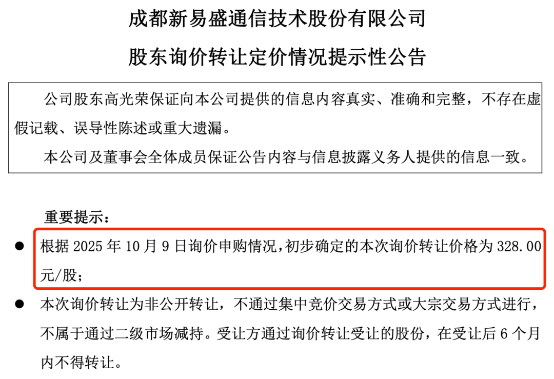 【导读】新易盛正式公布询价转让定价,董事长高光荣拟通过非公开方式减持股份,套现金额达37.49亿元,16家机构投资者参与认购。