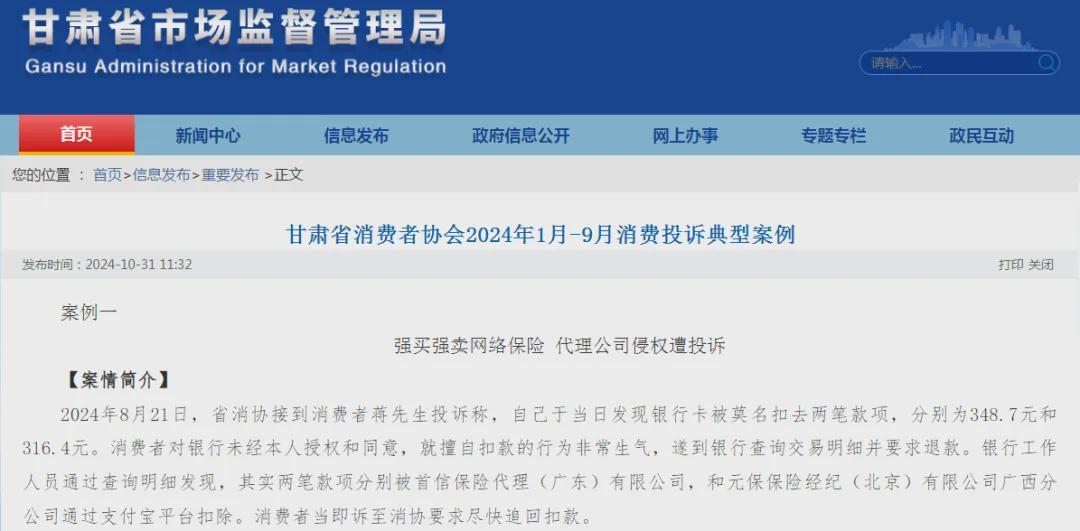 然而,元保并非首次陷入此类争议。去年,该公司就曾因“诱导投保”、“自动扣费”等问题被网友投诉,甚至一度遭到舆论的强烈谴责。去年11月,某省市场监管局还通报了元保强买强卖网络保险的消费侵权案件,进一步加剧了其信任危机。