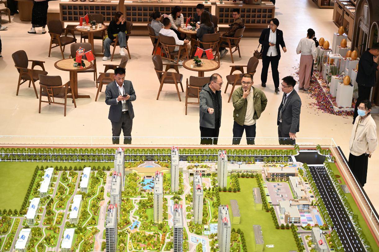 图:10月1日,内蒙古呼和浩特市某新楼盘售楼处,购房者利用假期看房(图片由CNSPHOTO提供)