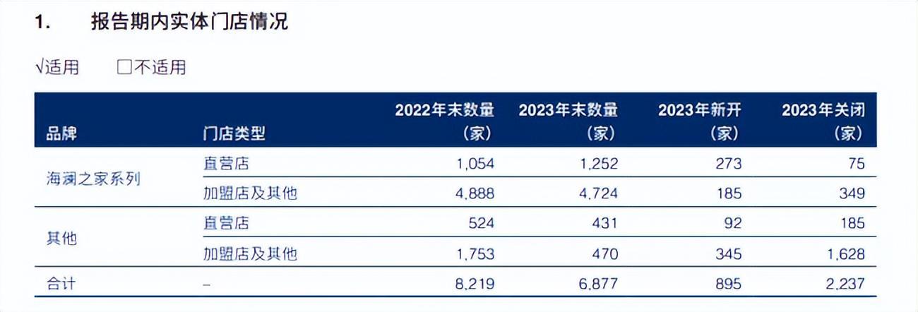 这种曾被外界笑称为“傻瓜式加盟”的模式,吸引了大量加盟商加入,也让海澜之家在短期内完成了跑马圈地。2009年,其门店数据为655家,到了2022年,此数字增长至巅峰的8219家,规模扩张了近13倍。同时,海澜之家在2022年的加盟店数量为6641家,占总门店数的比例高达80%。