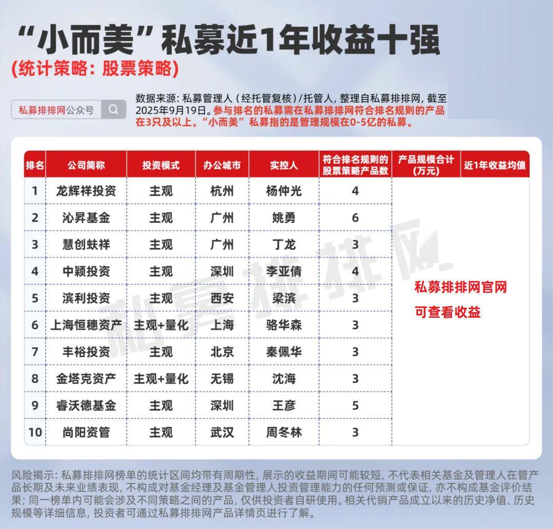 从机构维度分析,在符合排名规则的220家私募中,收益超50%的机构达106家(占比48.18%),更有33家机构收益翻倍(占比15%)。为帮助投资者更好决策,本文梳理了四大策略领域的TOP10机构。(统计规则:参与排名的私募需有3只及以上产品显示业绩;统计区间:2024年9月19日-2025年9月19日)