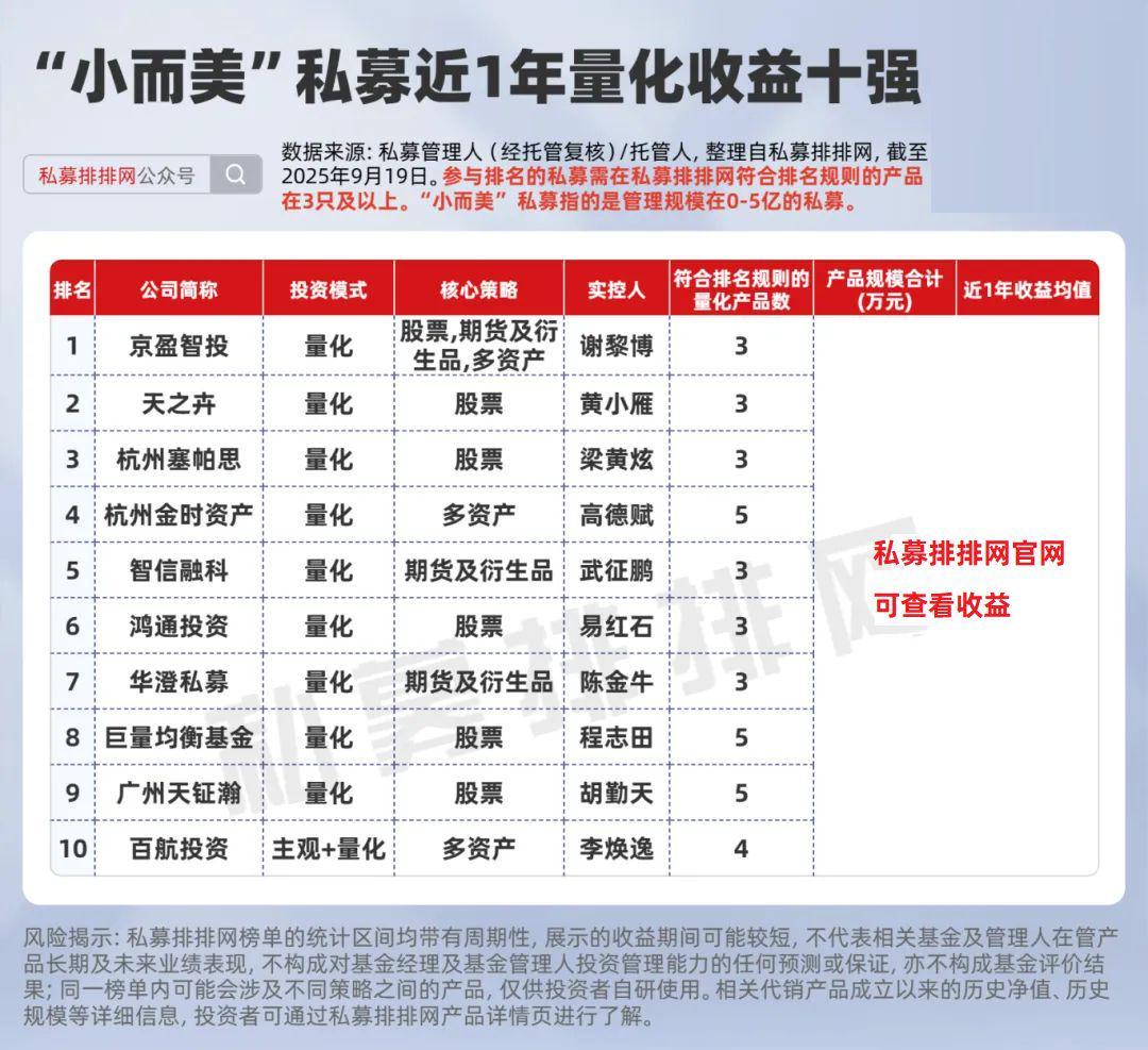 量化基金榜:京盈智投登顶,天之卉表现突出