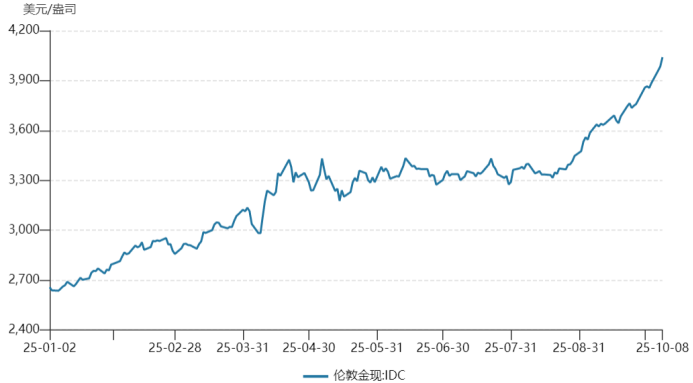 2025年国庆假期期间,全球黄金市场迎来新一轮上涨行情。10月8日,伦敦现货黄金价格首次突破4000美元/盎司关口,年内累计涨幅超过53%。这一走势与美联储货币政策调整密切相关——西部证券分析指出,降息周期重启削弱了美元信用体系,黄金作为避险资产的战略价值进一步凸显。高盛集团更是将2026年末黄金目标价上调至4900美元/盎司,较此前预测提升14%。