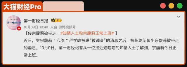 10月2日,杭州市上城区纪委通报,娃哈哈宏胜系高管严学峰涉嫌违纪被立案审查。严学峰自2007年起担任宗馥莉心腹,其任职公司达187家,其中6家为法人代表。作为宗庆后去世后宗馥莉的得力干将,严学峰的违纪事件直接引发了外界对宗馥莉的猜测。