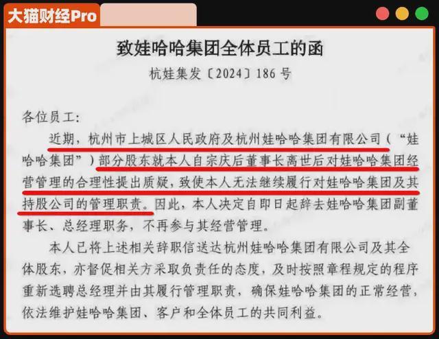 宗馥莉自2024年2月宗庆后去世后,开始打破父亲时代的政策。两个月内,娃哈哈逐渐‘宏胜化’,要求骨干和中层员工将合同从娃哈哈转签至宏胜。这一举措引发内部异议,甚至被捅至国资大股东处,导致宗馥莉一度辞职,但7天后便复职并站稳脚跟。