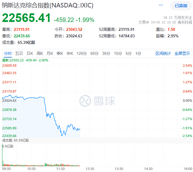 纳斯达克指数狂泻450点,跌幅一度超过2.5%,市场恐慌情绪蔓延。