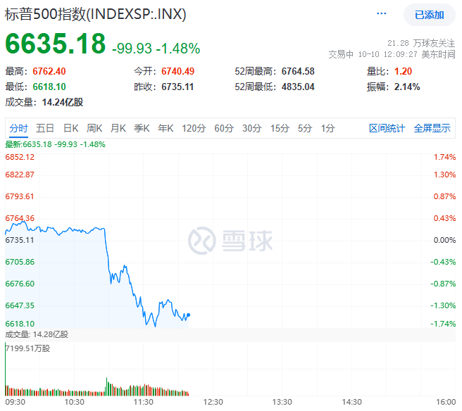标准普尔指数也未能幸免,跌超百点,跌幅一度逼近1.75%,投资者信心受挫。