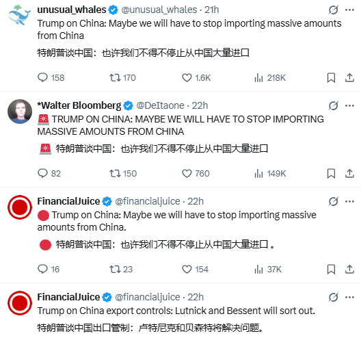 而就在一天前,特朗普还在外媒上提及:“也许不得不停止从中国大量进口”的言论,这无疑是对市场的又一次打击。