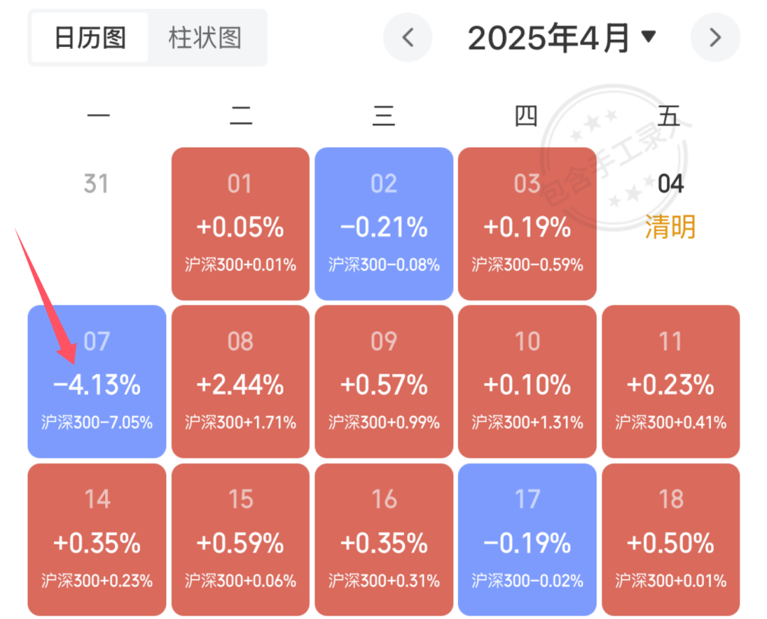 但随后A股迅速企稳,七个交易日内我的账户持续回血,4月整体实现盈利。